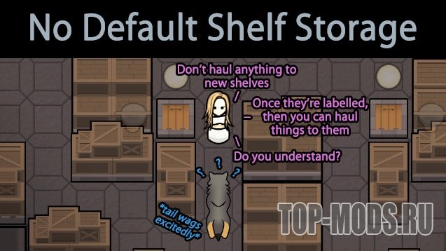 По умолчанию в настройках полки для хранения установлено значение "Приоритет важен" и "принимать оружие". Это приводит к тому, что новые полки заполняются оружием, оружие выбрасывается посреди поля, портится при изменении параметров хранения и отнимает время у всех. Этот мод изменяет приоритет на обычный и отменяет опцию хранения по умолчанию. Теперь ваши полки (и бункеры для питательных паст) будут пустыми и неиспользуемыми, пока вы не укажете, что на них следует хранить.