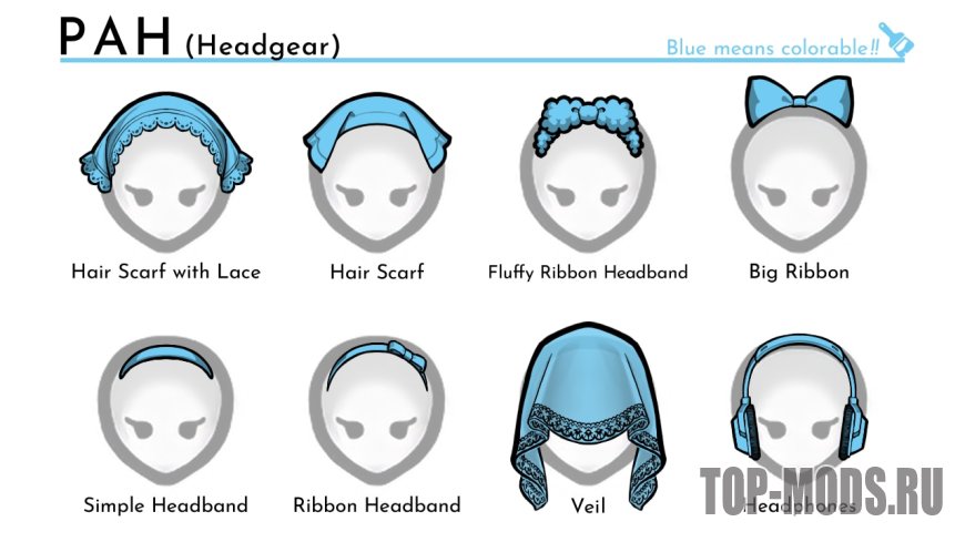Другие предметы, такие как заколки и накладные волосы. Они не действуют при надевании.