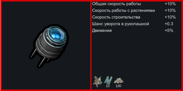 Постройки: Новый верстак, мощный генератор энергии, Мед.капсула для проведения операций и эффективного лечения, две новых автоматических турелей (для начального уровня развития и позднего)