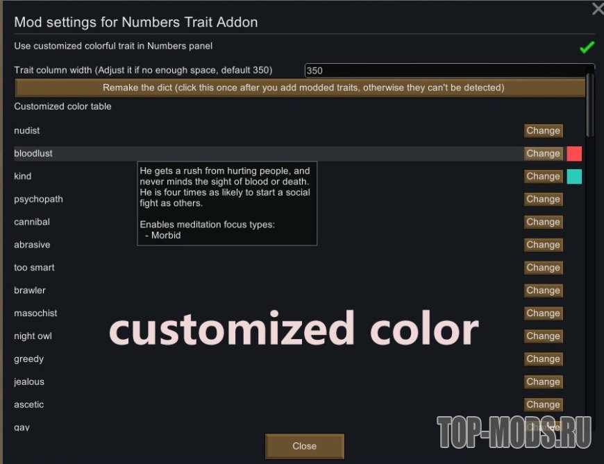 Добавлена поддержка отображения характеристик пешки на панели «Numbers». Следовательно, вы можете легко проверить, кто вам нужен из сотен врагов или посетителей, не нажимая на них по одному. Вы также можете сортировать и настраивать любой цвет, который вы хотите отображать для каждой черты, чтобы быстро различать их.