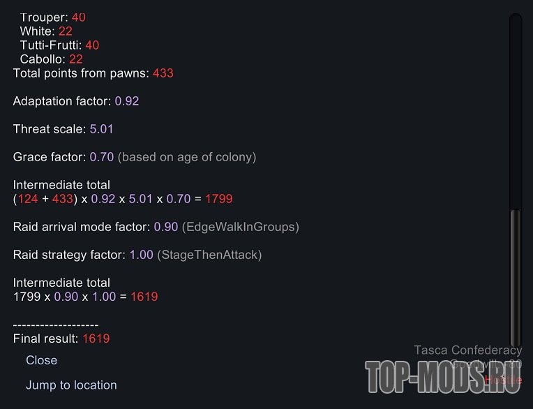 Для еще большего познавательного опыта вы также можете включить разбивку точек угроз, которая показывает подробности того, как баллы были рассчитаны, строка за строкой. Эта опция должна быть сначала включена в настройках мода и не будет работать и/или иметь смысл с модами, которые изменяют способ подсчета очков угрозы.