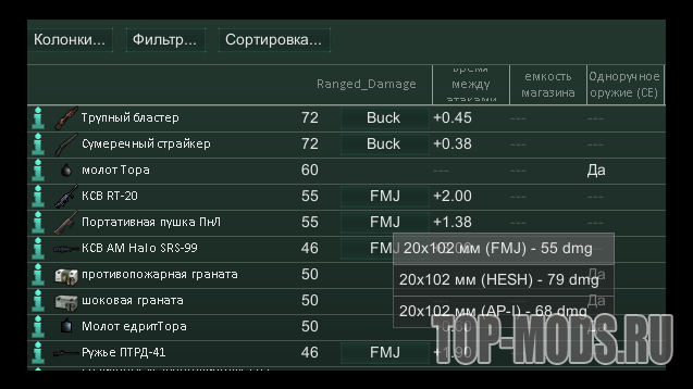 Мод, который добавляет новое окно для сравнения экипировки по различным характеристикам и фильтрам.
