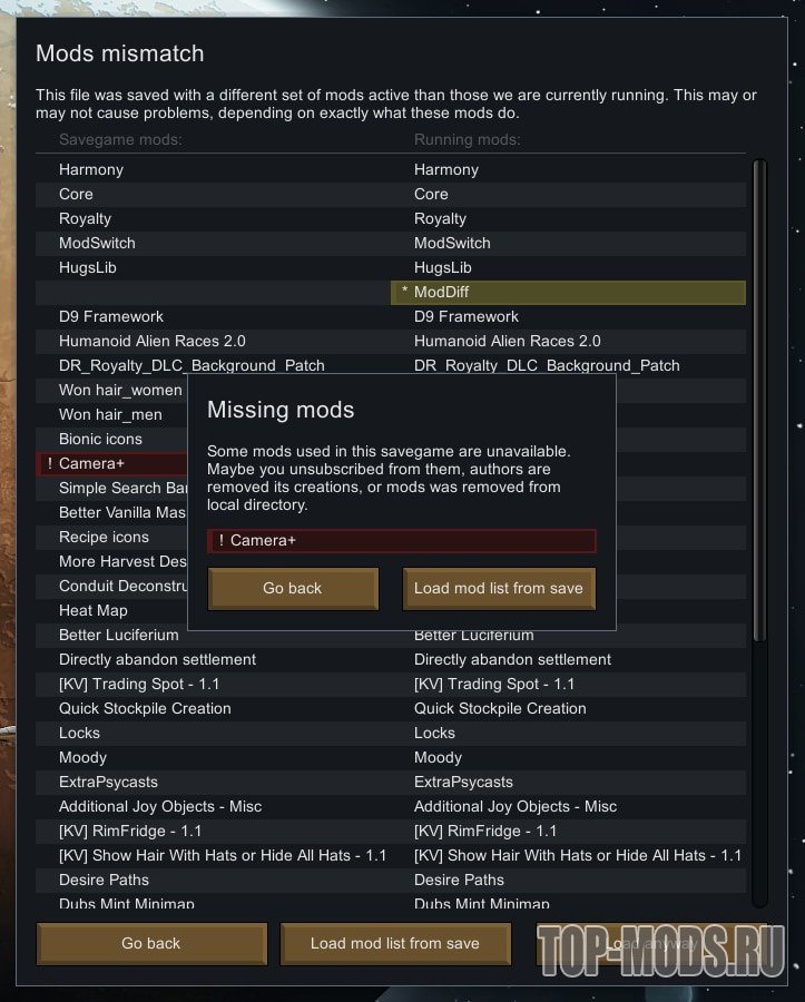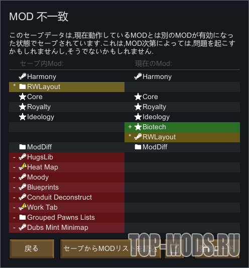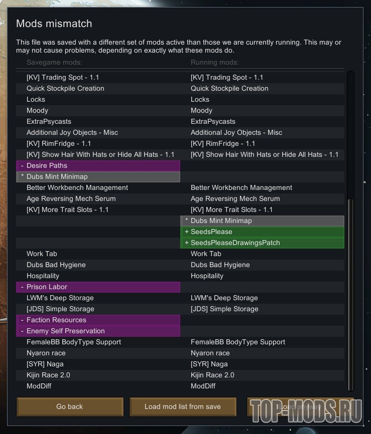 Окно Alternatime Mods Mismatch с улучшенной индикацией происходящего
