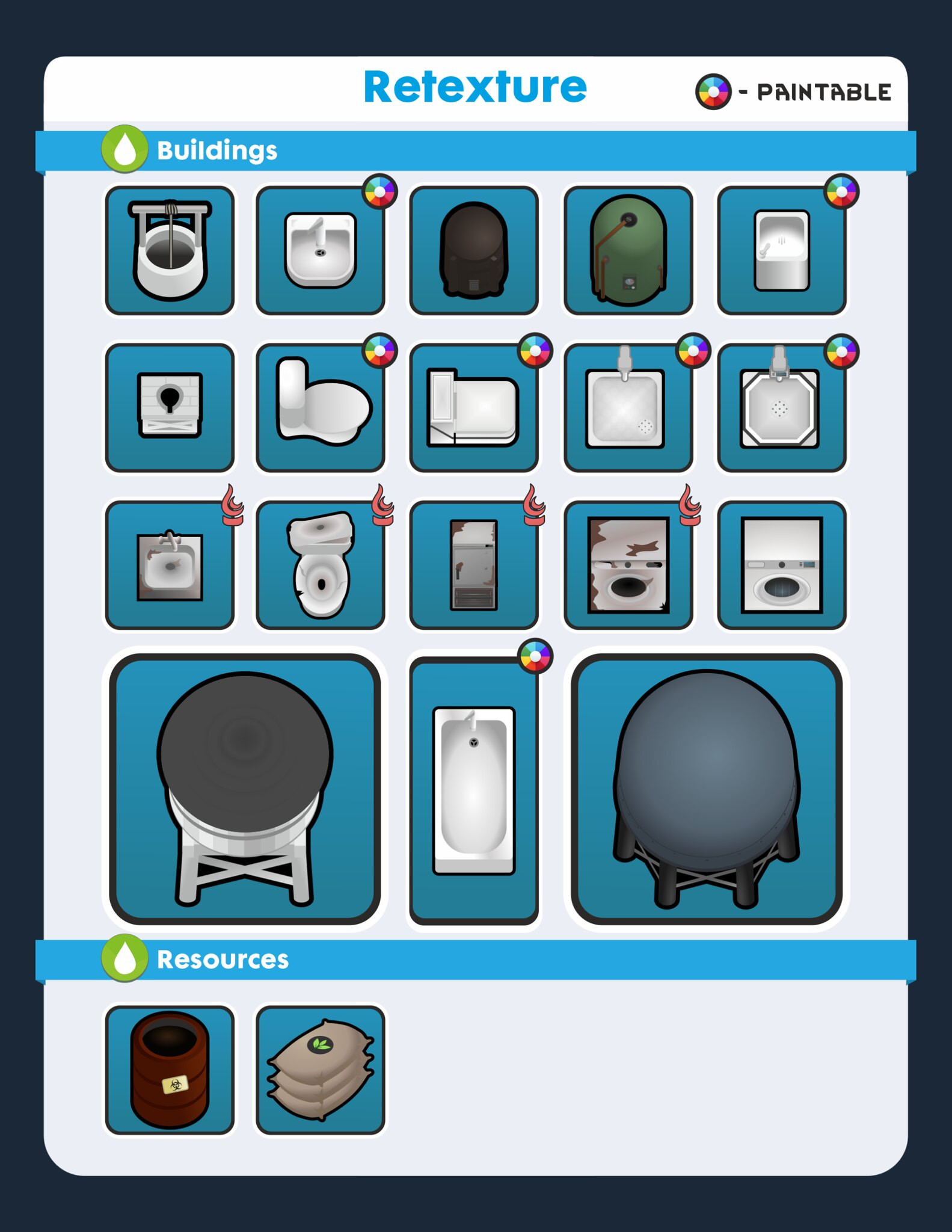 Этот мод является дополнением к основному функционалу DubsBadHygiene, а также продолжением идеи дать вторую жизнь хламу из "Идеологии".