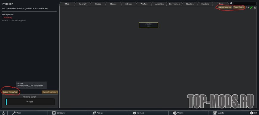 Кроме того, он добавляет новую вкладку «Скрытая» в ResearchTabs, видимую только в режиме разработчика. Вы можете использовать эту вкладку, чтобы скрыть исследовательские проекты, не удаляя их, что помогает избежать красных ошибок от удаленных проектов.