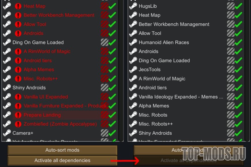 Упрощает активацию зависимостей мода, если их много в списке.