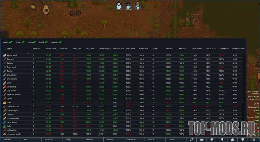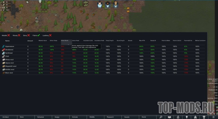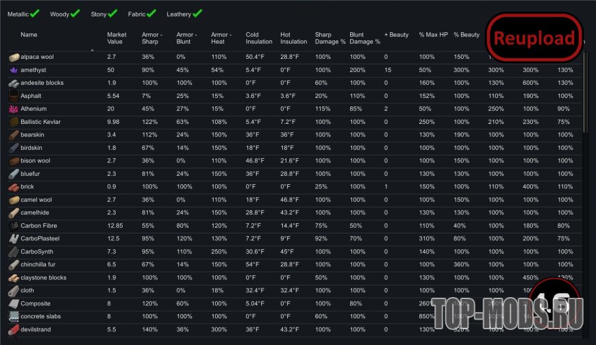Это инструмент для сравнения характеристик предметов, когда моды добавляют кучу новых тканей, металлов и т. д., а вы не можете вспомнить, что лучше всего использовать.