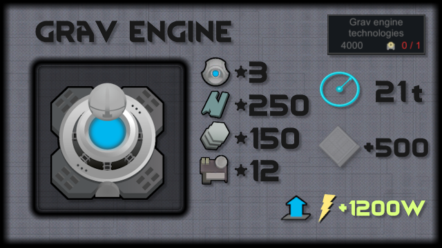 Теперь вы можете создавать гравидвигатели, но это будет не дешево. Их технология находиться в конце древа и требует чертеж для открытия.