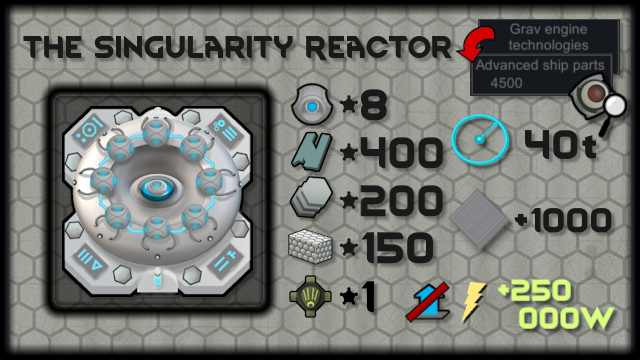 Высшая ступень развития грави технологий. Миниатюрная черная дыра обеспечит ваш корабль огромным количеством энергии и позволит расширить его еще на тысячу клеток.
