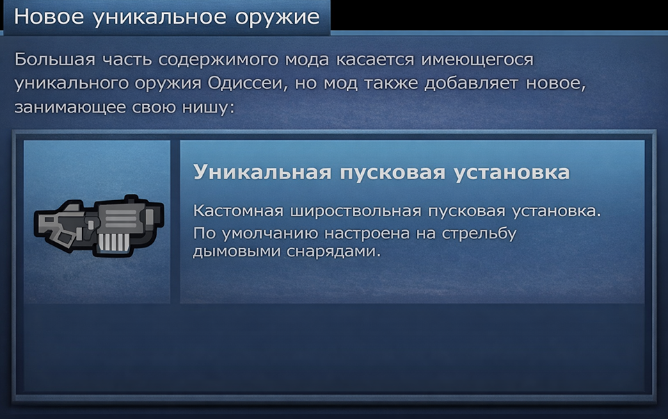 Добавляет наборы модификации оружия, позволяющие изменять и перенастраивать уникальное оружие.