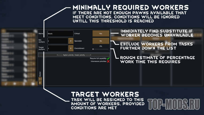 Минимальное количество исполнителей; при нехватке условия игнорируются
