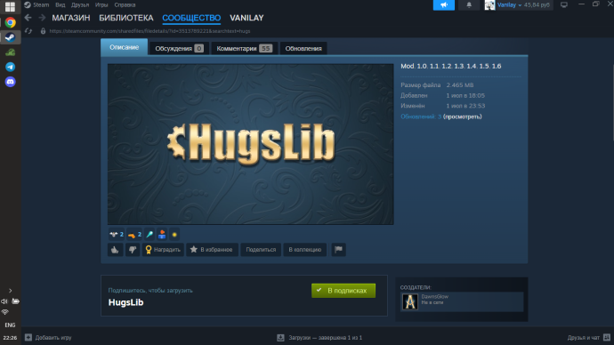 Существует несколько вариантов перевода мода HugsLib на русский язык:
