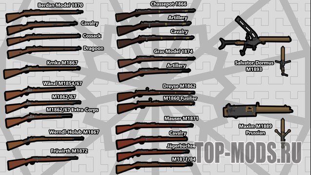 61 новое оружие (с 19 дополнительными вариантами) и два пулемета.