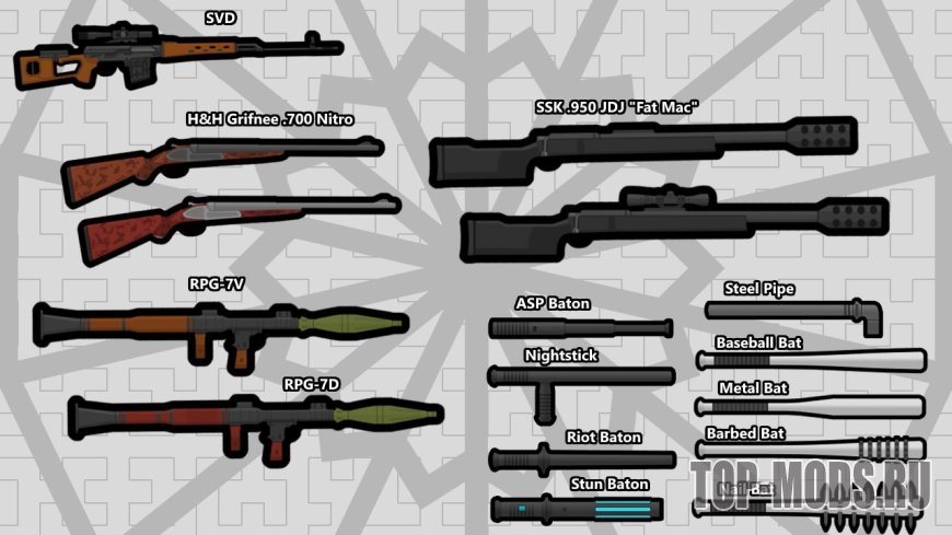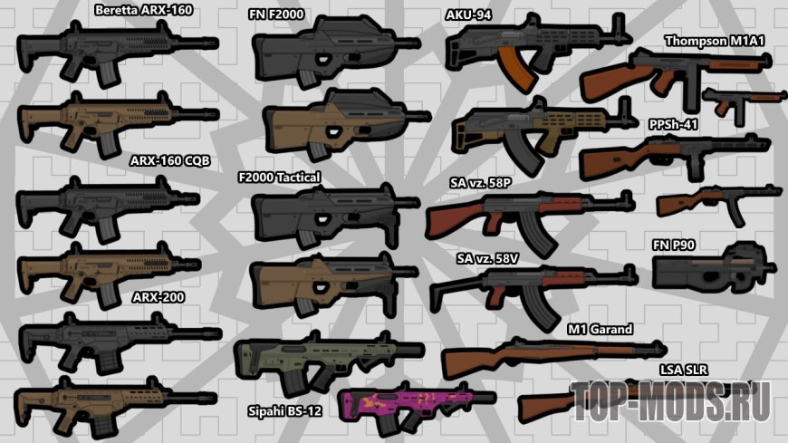 100+ новых видов оружия и 50+ дополнительных вариантов, по решению сторонников и пользователей Guns Galore в Discord, а также меня самого. Со временем этот набор будет расширяться.