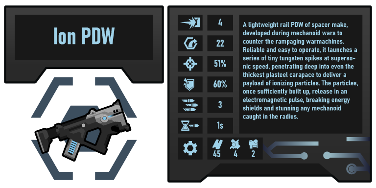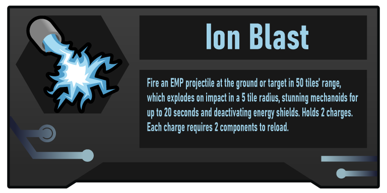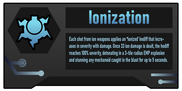 Добавляет ассортимент космического ионного оружия, которое жертвует первичным уроном и убойной силой ради короткой перезарядки и пробития брони, а также специальный пассивный электромагнитный взрыв.