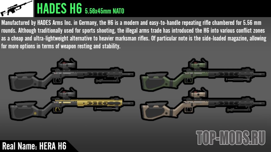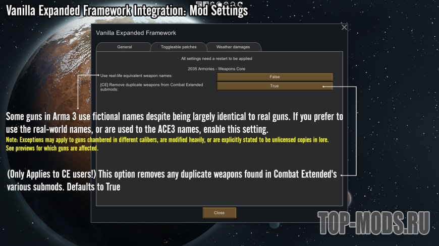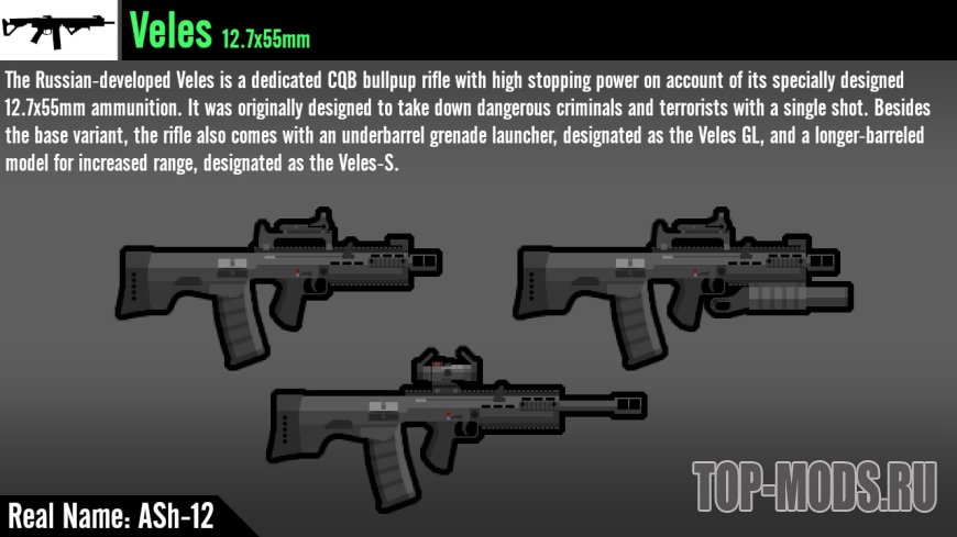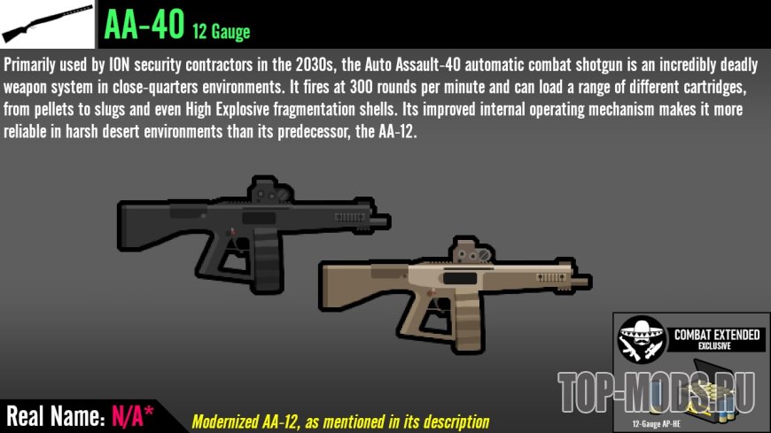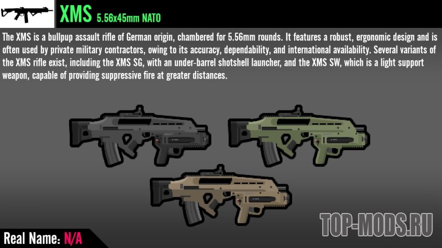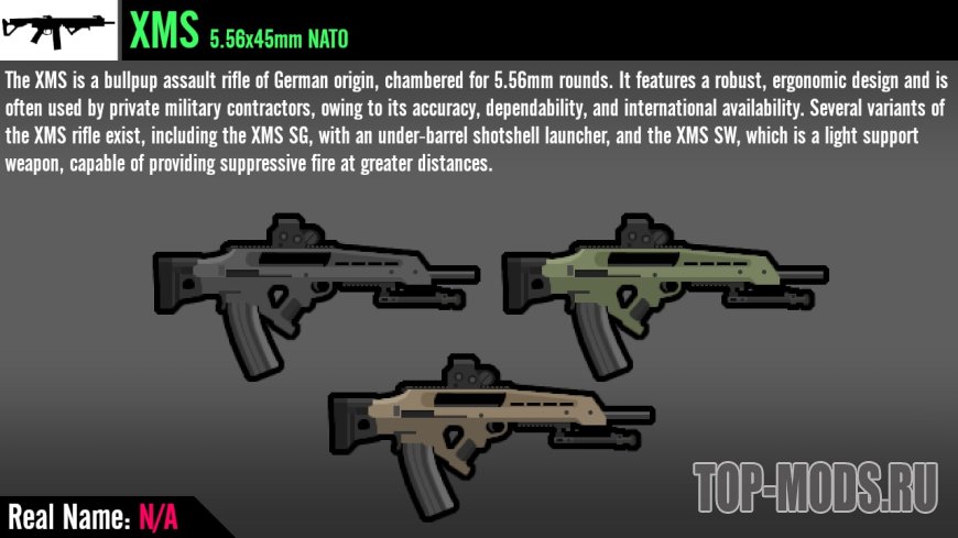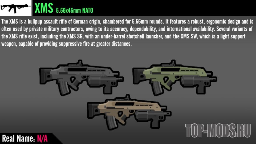 Мод-дополнение серии "Armories 2035", посвященный оружию, добавленному в дополнения Armaverse Creator. Для некоторых функций и активностей требуется, чтобы основной мод на оружие был загружен вместе с этим модом.