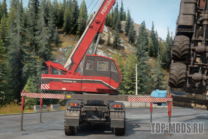 Кран теперь действительно мощный, но сбалансированный. Может поднять даже Tayga, но не выдерживает более тяжелые грузы. Работает в кооперативе.