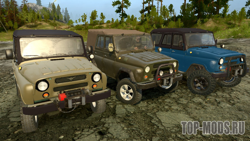 Три разных Уаза к юбилею 222 - это мод uaz_bej (05vadim), только перекрашенные машины и изменённые ТТХ.