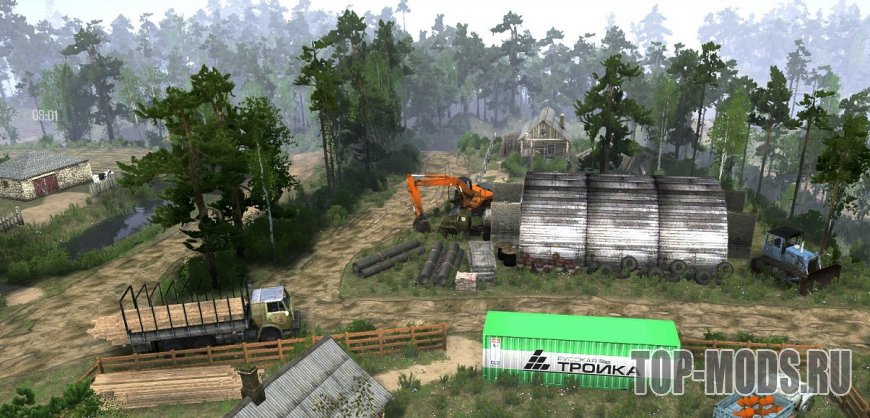 Нет точек погрузки. Лес был заготовлен заранее, в делянке Кузьмича. На старте 2 авто (можно менять).