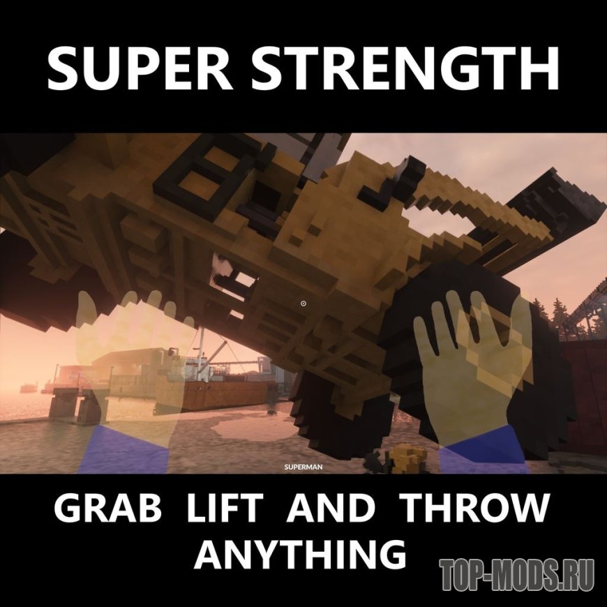 Дает вам возможность хватать и поднимать все движимое и бросать его с суперсилой. На картинке показана версия Super Man Mod, но у этого мода нет рук. ***Добавлена возможность всегда включать и выключать ***Нажимайте "O" и "P" для включения и выключения.