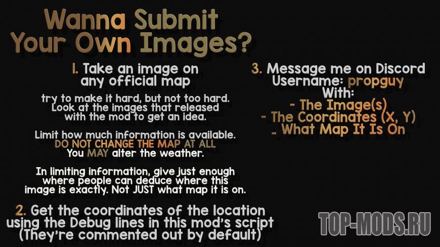 Хотите добавить несколько изображений? Следуйте инструкциям на картинках выше, и у вас есть шанс быть добавленным в мод!
