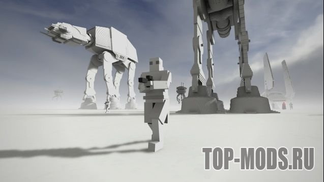 Walker AT-AT Map – интересная зимняя карта для Teardown на тему серии фильмов «Звездные войны». С самого начала вам предстоит видеть, как на вас двигаются ходоки AT-AT и AT-ST, но откуда не возьмись начинаться стрельба и из снежного тумана появляются стреляющие десантники.