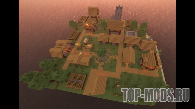 Уровень песочницы небольшой деревни minecraft, содержащий несколько зданий и сооружений для вашего разрушительного удовольствия.