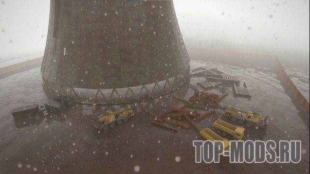 Это относительно большая карта, которую я создавал около 2-3 месяцев. Она содержит 3 большие градирни с естественной тягой, расположенные в Германии, насосную станцию и множество машин для разрушения.