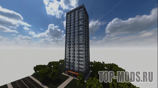 Недавно отремонтированная жилая башня с несколько... сомнительным внешним видом. Навеяно одним зданием в Великобритании.