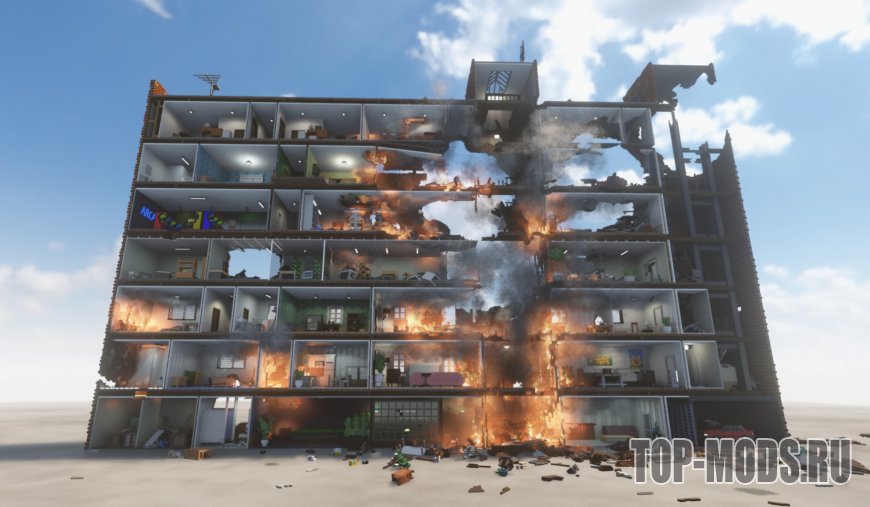 Здание со снятой передней стеной, чтобы показать внутренности.