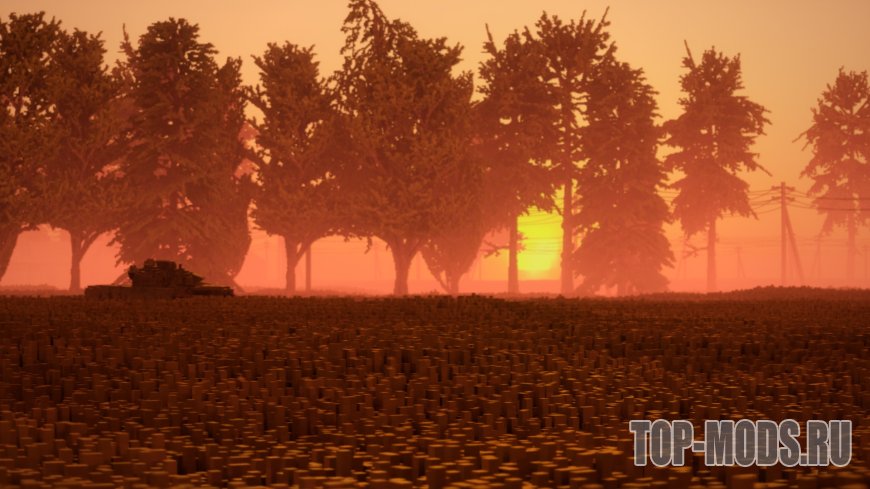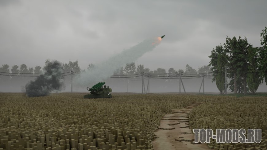 Бесконечная случайно сгенерированная сельская местность где-то в Восточной Европе. Разбитая военная техника, окопы, разрушения и артобстрелы вдали создают ощущение, что находишься в горячей точке.