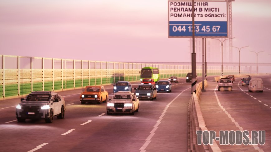 Замкнутая кольцевая дорога вокруг большого города с искусственным движением. Две дополнительные карты: шоссе и мост.