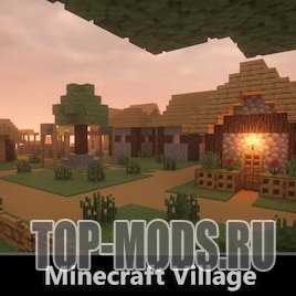 Песочница с небольшой деревней из Minecraft, включающая множество зданий и построек — идеально подходит для творческих экспериментов или разрушительного веселья.