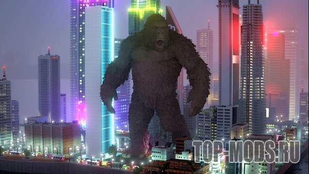 Этот мод добавляет в игру нового порождаемого персонажа - Кинг-Конга, управляемого искусственным интеллектом. Этот гигантский титан может быть размещен на любой карте и будет разрушительно взаимодействовать с окружающей средой.