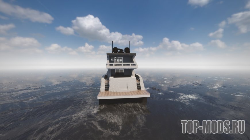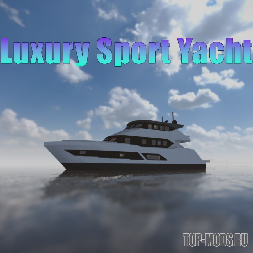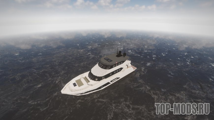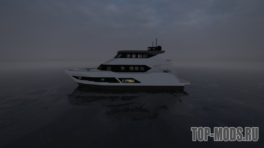 Очень реалистичная роскошная спортивная яхта. Он не основан на какой-либо конкретной яхте, а представляет собой гибрид Riviera/Maritimo/Viking.