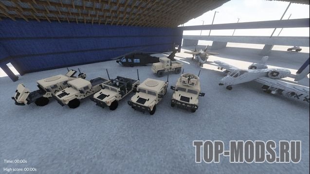Играйте в Teardown, начните карту, нажмите escape, выберите меню spawn в нижней части экрана, выберите "Military pack", выберите "U.S.Military", затем выберите транспортное средство, которое вы хотите, нажмите для спавна.