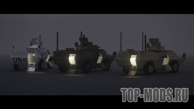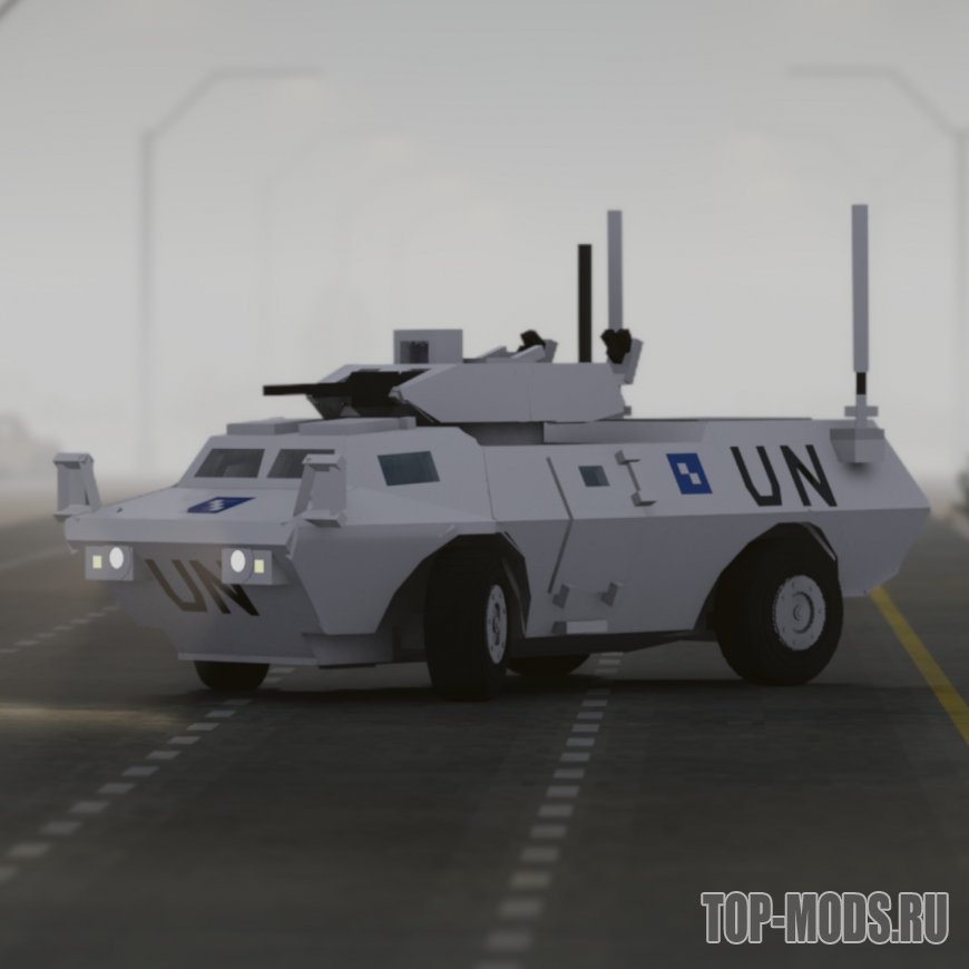 я офигел не с того что этот бтр от UN а с того что это ОЧЕНЬ детализированный мод я еще не видал на столько гладкий и с углами мод. рекомендую