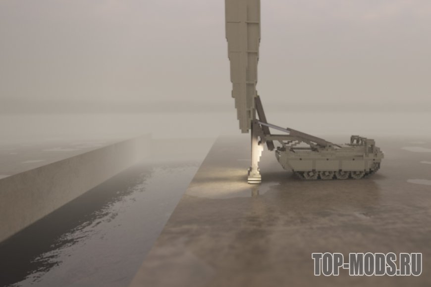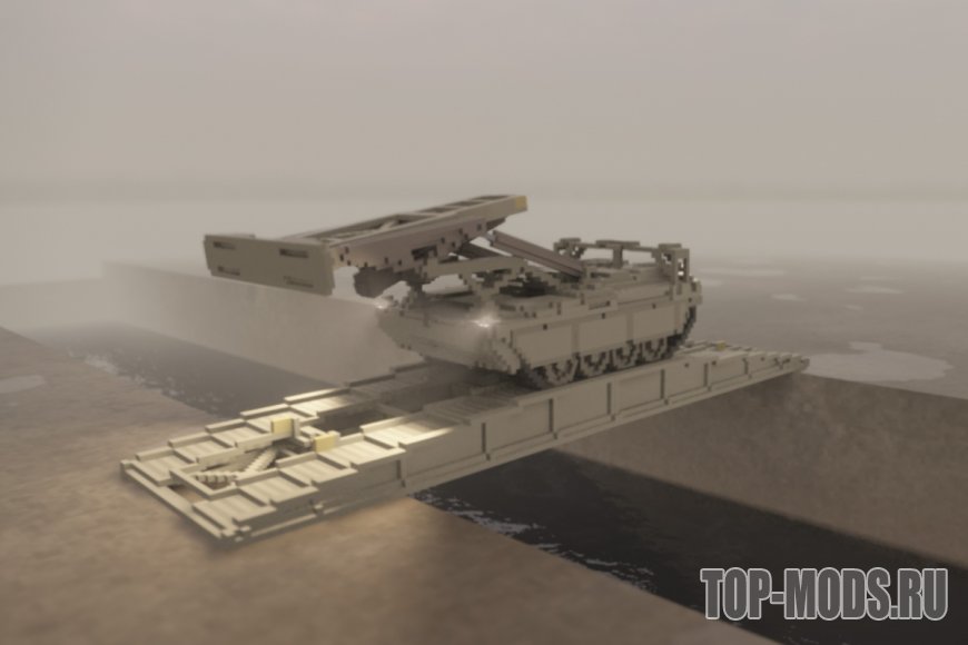 Танк, запускающий мобильный мост. Он может пройти около 140 вокселей зазора. Вы можете вернуть мост обратно на танк.