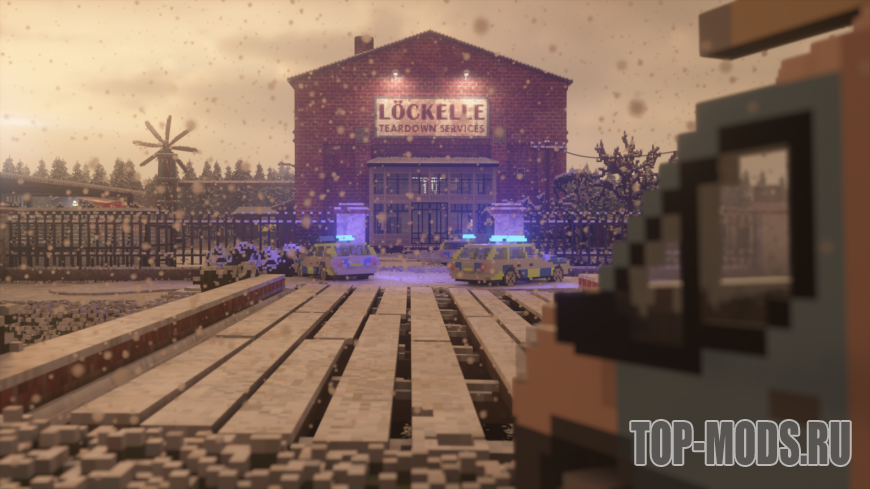 Разбитая полицейская машина Локкеля, нажмите F, чтобы переключить фары. Все, что функционирует в этой машине, принадлежит Шифферту (да, я просто переделал его машину и сделал ее такой, чтобы она выглядела как в сцене в конце первой части миссии "Погоня").