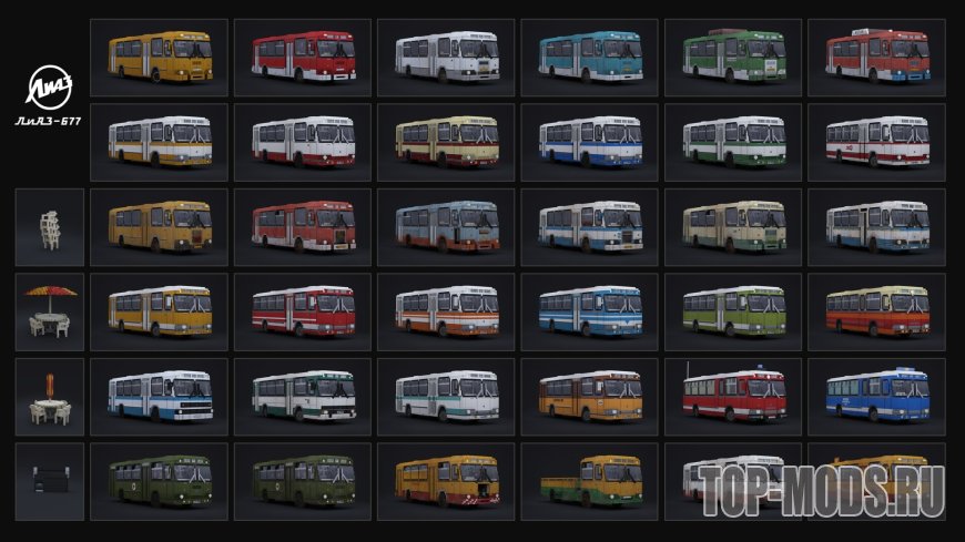В моде присутствует 36 вариаций ЛиАЗ-677 и ЛиАЗ-677M различной степени изношенности.