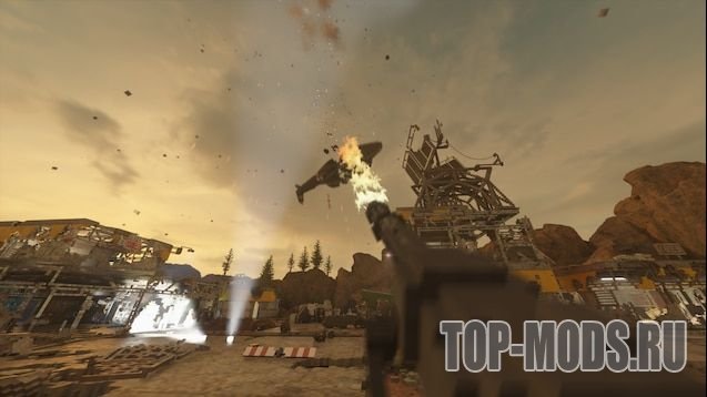 100 выстрелов в минуту, множество снарядов, взрывы по желанию. LMB - стрелять. RMB+LMB - взрывные патроны.