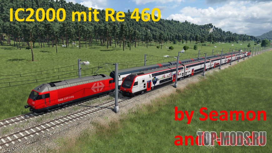 Эта модификация добавляет в игру Transport Fever 2 двухэтажные поезда IC2000 и универсальный локомотив Re 460.