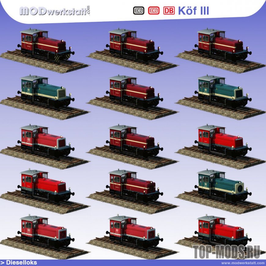 Легкие двухосный маневровый локомотив "Köf III DB" для игры Transport Fever 2. Мод добавляет следующие классы: Köf 10, Köf 11, классы 331, 332 и 333.